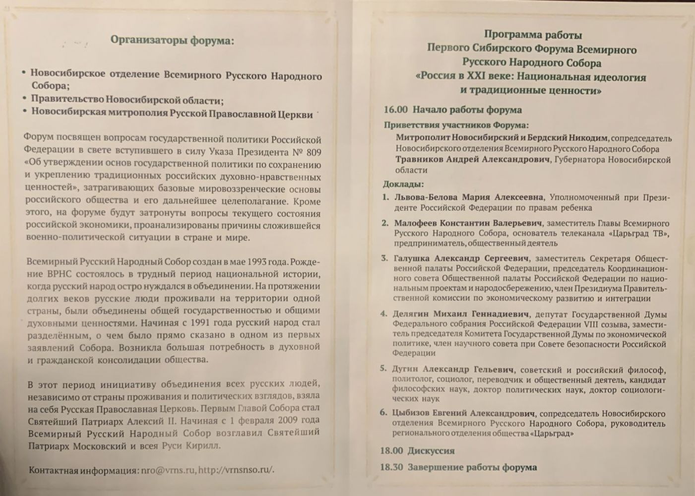 Организаторы форума: Новосибирское отделение Всемирного Русского Народного Собора (ВРНС), Правительство Новосибирской области и Новосибирская митрополия.